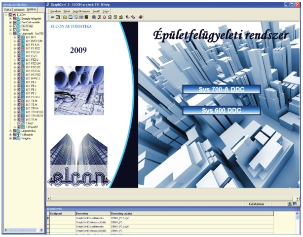 A GraphCont grafikus épületfelügyeleti rendszer, az ELCON Kft. által forgalmazott SYS700 készülékekhez illeszkedve, lehetővé teszi épületfelügyeleti rendszerek működésének fi- gyelemmel kísérését, az események folyamatos naplózását, mérési adatok gyűjtését, illetve biztosítja a kezelői beavatkozás lehetőségét. A menüvezérelt grafikus környezet biztosítja az egyszerű kezelhetőséget és a lehető legtöbb hasznos információ egyidejű megjelenítését.