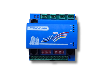 SYS800-IO-HFR a DIALOG-IV készülékcsalád digitális és analóg jelek kezelésére alkalmas tagja, amely kifejezetten a hő és füst elleni védelemben előforduló szabályozási és vezérlési feladatok ellátására lett kifejlesztve